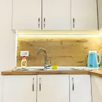 Für Ihren Komfort bietet diese Apartments die voll ausgestattete Küche mit einem Wasserkocher, einem Kühlschrank und Küchenutensilien.