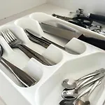 Gästerna kan använda ett utrustat kök utrustat med vattenkokare, kylskåp och köksredskap.